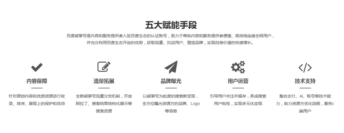 百度熊掌號是內(nèi)容和服務(wù)提供者入駐百度生態(tài)的認(rèn)證賬號,致力于幫助內(nèi)容和服務(wù)提供者便捷、高效地連接全網(wǎng)用戶,并充分利用百度生態(tài)開放的優(yōu)勢,獲取流量、沉淀用戶、塑造品牌,實(shí)現(xiàn)自身價(jià)值的快速增長。